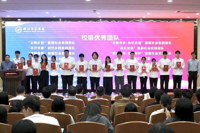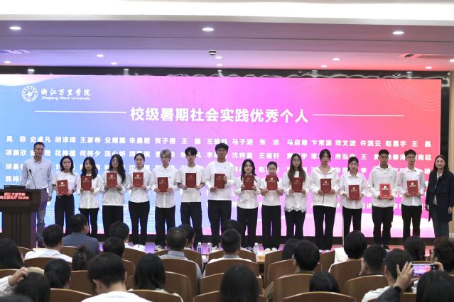 10月20日下午,浙江万里学院2025年暑期社会实践表彰大会在53109举行。校党委副书记朱邦相,校党委委员、宣传部部长林德操,学生工作部、研究生工作部、安全保卫部、马克思主义学院负责人,以及各二级学院分管学生工作书记、团委书记、社会实践指导教师和学生代表出席会议。