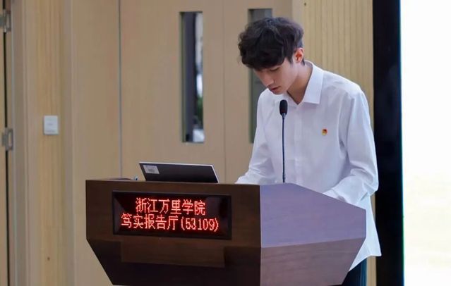 商学院“最炫民族风”实践队蓝子玥、信息与智能工程学院“踏山逐海万里行”实践队吴志恒分别作优秀学生代表汇报,展现了万里学子深入基层、锤炼本领的青春风采。
