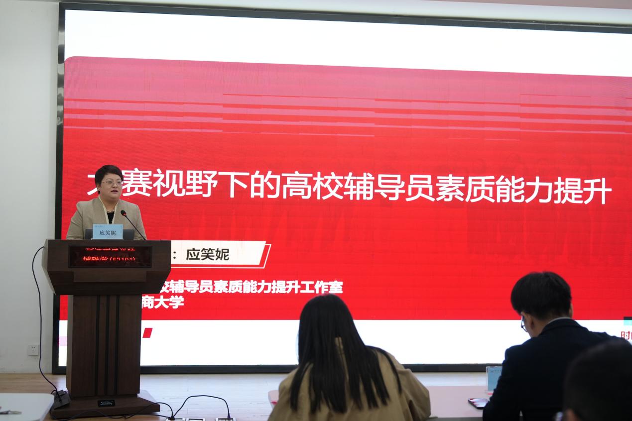 为全面提升辅导员队伍的实践能力、研究水平与专业素养,加快推动学工队伍向职业化、专业化、专家化方向发展,根据2025-2026学年辅导员业务能力与职业素养提升培训工作安排,11月5日上午,我校在钱湖校区53101举办“辅导员素质能力提升”专题培训。本次培训特邀浙江工商大学公共管理学院党委书记、浙江省高校辅导员素质能力提升工作室负责人应笑妮担任主讲,学生工作部部长陈彩祥、部长助理魏苗婷,以及我校辅导员参加此次培训。